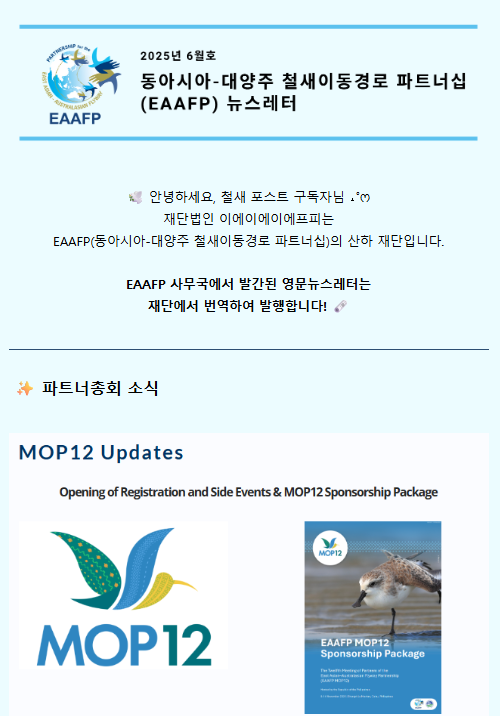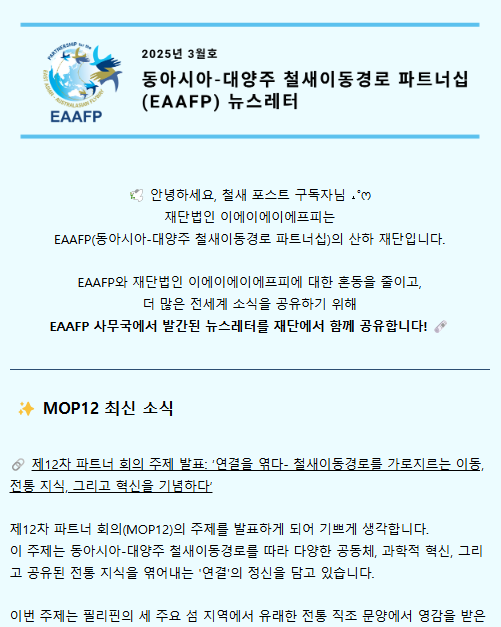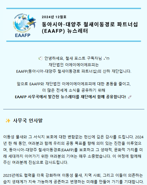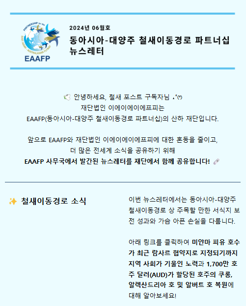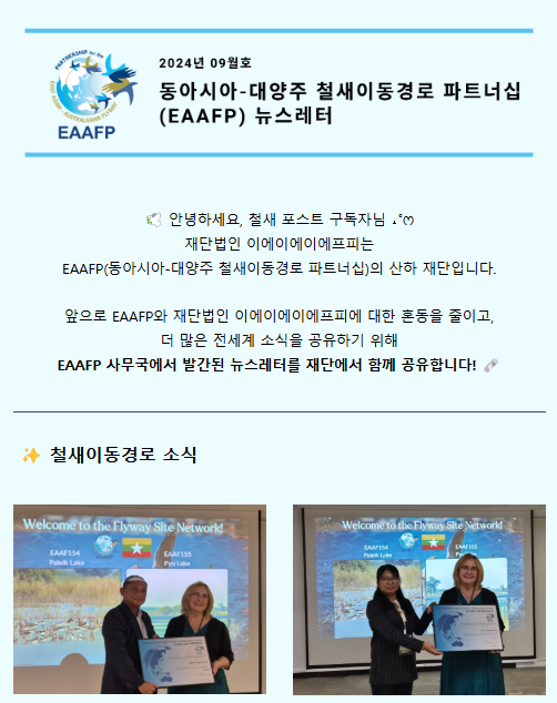 2024년부터 재단은 국제기구 EAAFP에서 발행하는 뉴스레터를 국문으로 번역하여 발행합니다.