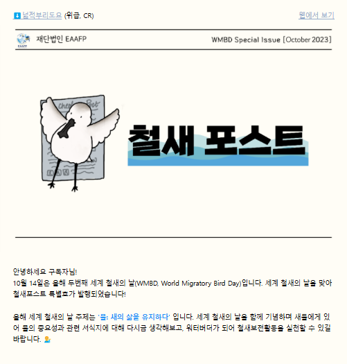 재단법인 이에이에이에프피 자체 뉴스레터인 <철새 포스트>는 2023년을 마지막으로 발행 중단되었습니다.