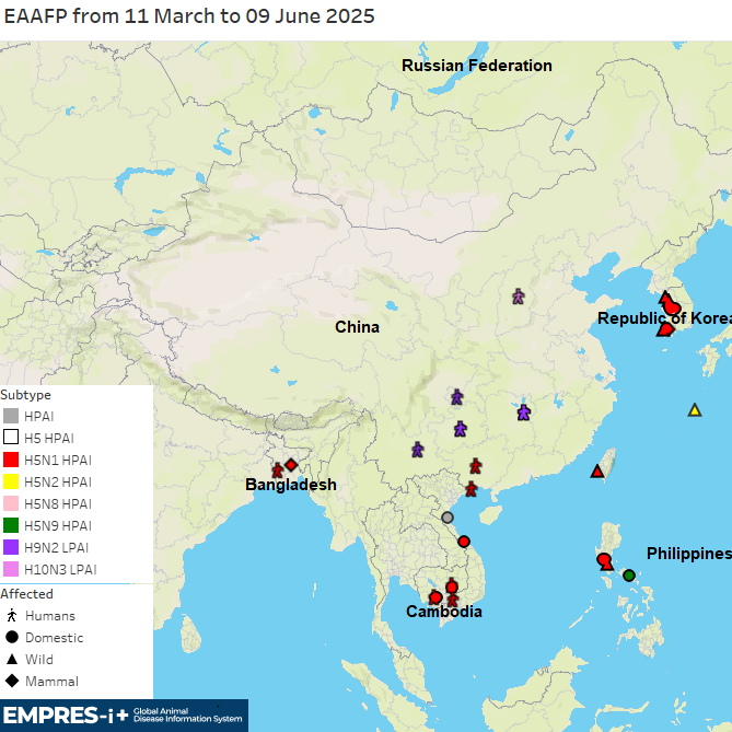 - HEO G B, KANG Y M, AN S H, et al., 2024. Concurrent Infection with Clade 2.3.4.4b Highly Pathogenic Avian Influenza H5N6 and H5N1 Viruses, South Korea, 2023[J/OL]. EMERGING INFECTIOUS DISEASES, 30(6): 1223-1227. DOI:10.3201/eid3006.240194.